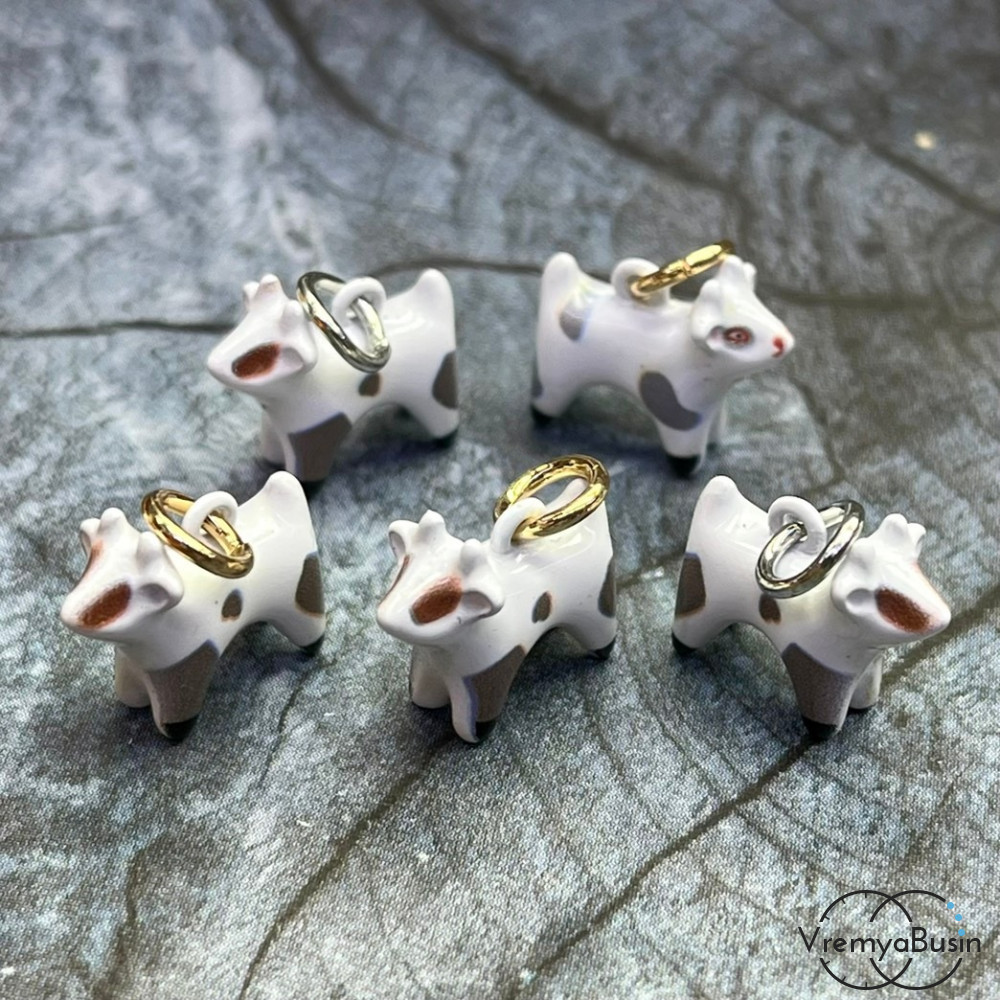 Подвески из латуни с эмалью "Корова", 15х12х7 мм (1 шт.)