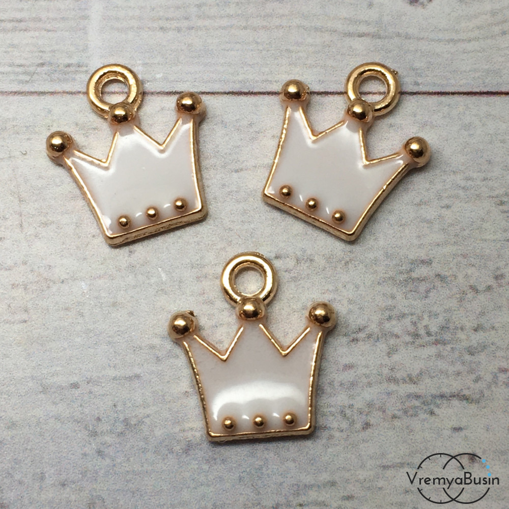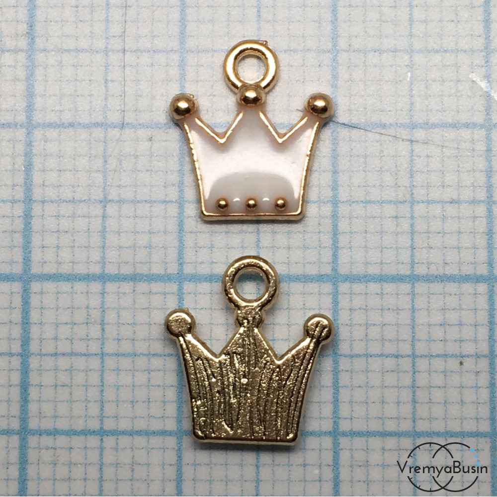 Подвеска металлическая с эмалью "Корона", цв. белый (1 шт.)
