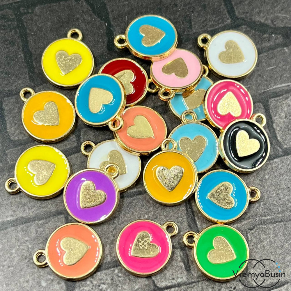 Подвеска с эмалью, медальон с сердечком 12х14 мм, цв. микс (1 шт.)
