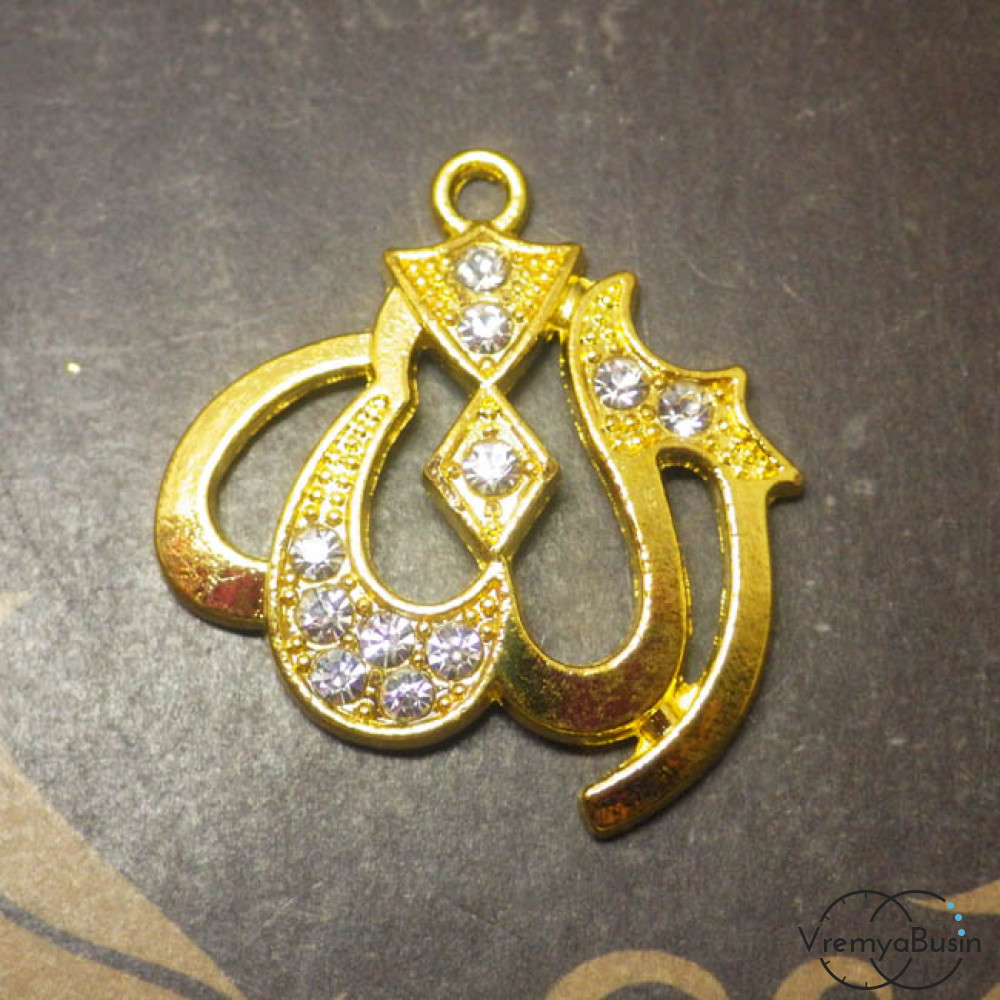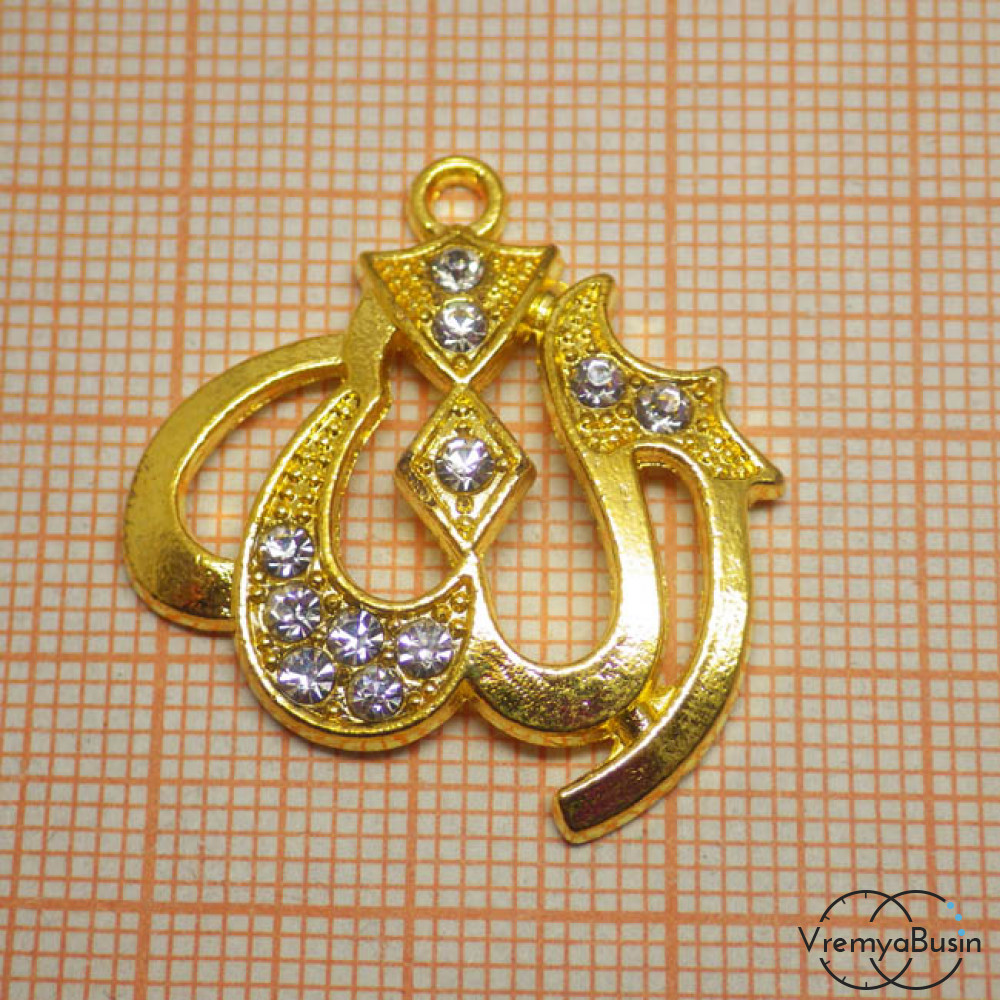 Аллах. Подвеска со стразами под золото