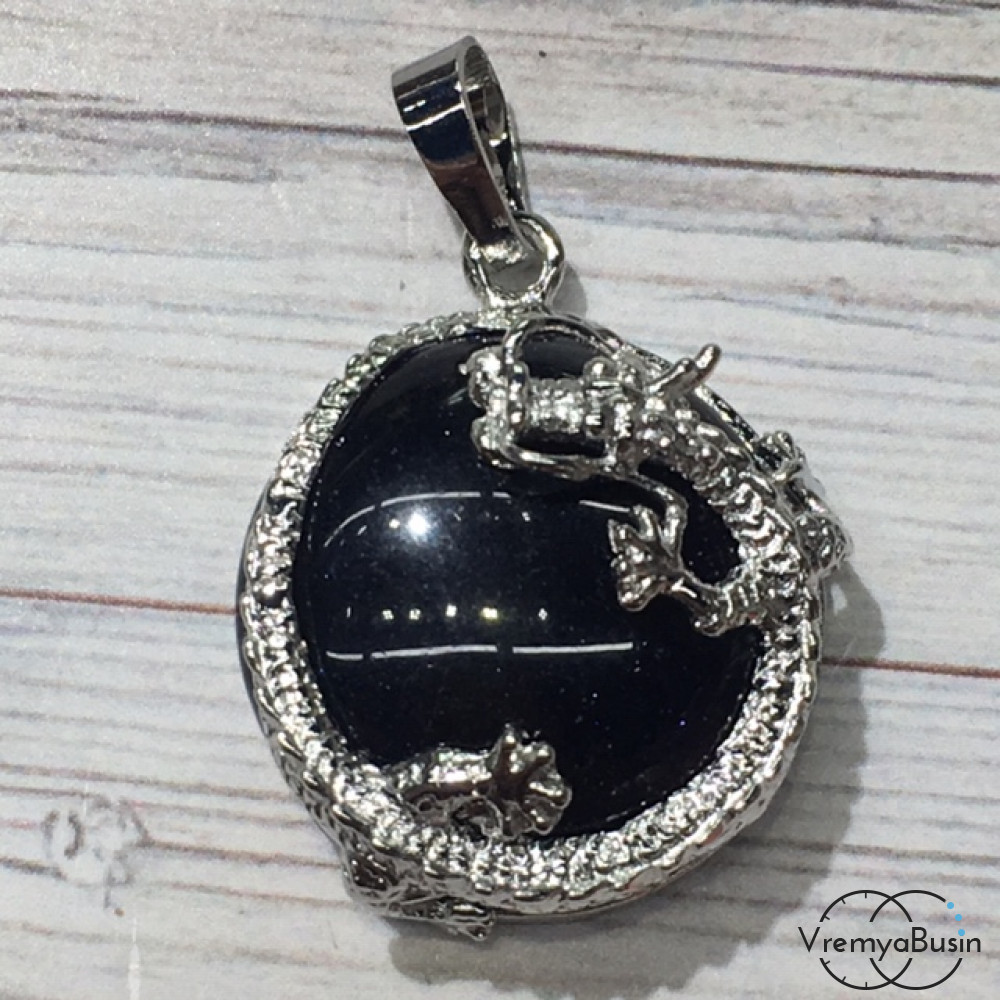 • Авантюрин синий. Кулон из камня "Дракон с кабошоном", 20х33 мм (1 шт.)