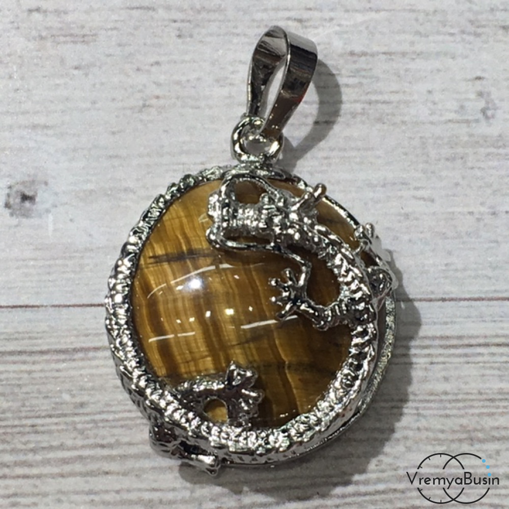 • Тировый глаз. Кулон из камня "Дракон с кабошоном", 20х33 мм (1 шт.)