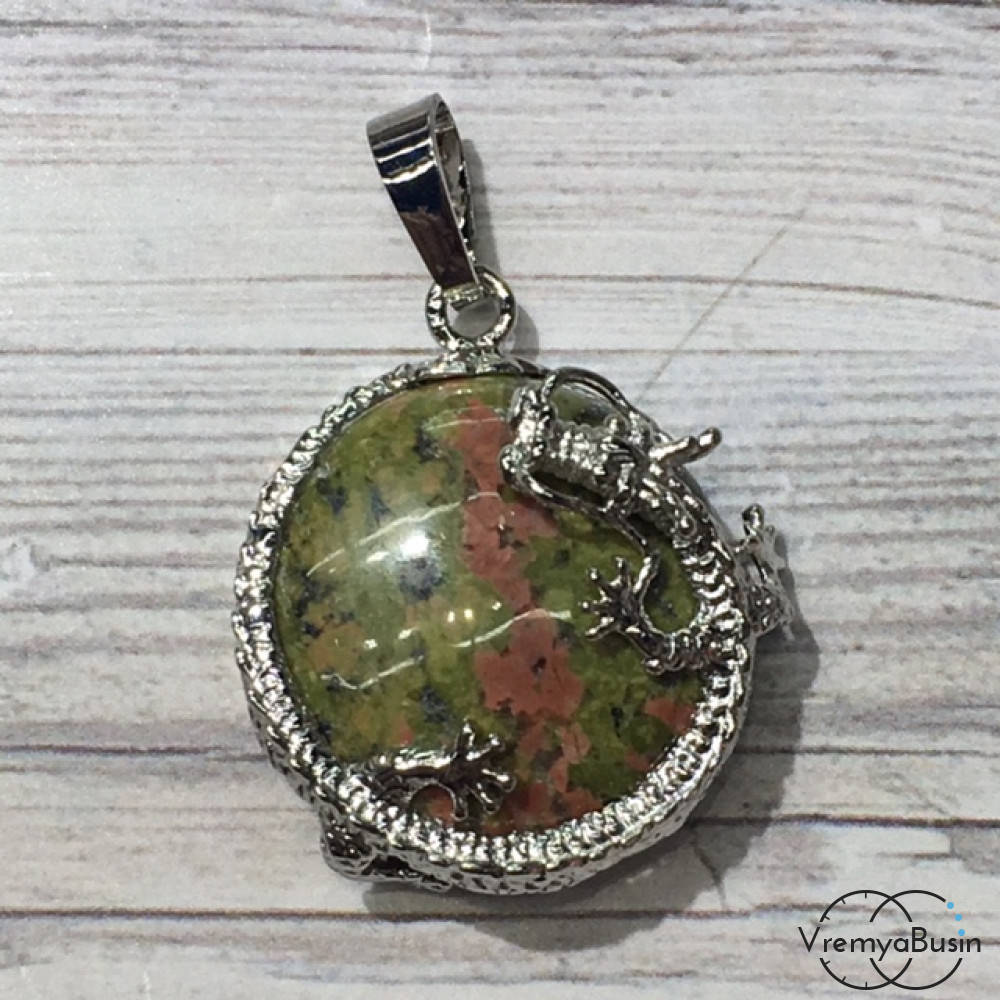 Унакит. Кулон из камня "Дракон с кабошоном", 20х33 мм (1 шт.)