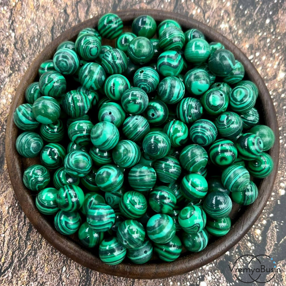 Малахит имит., полупросверленные бусины шарики 8 мм (1 шт.)