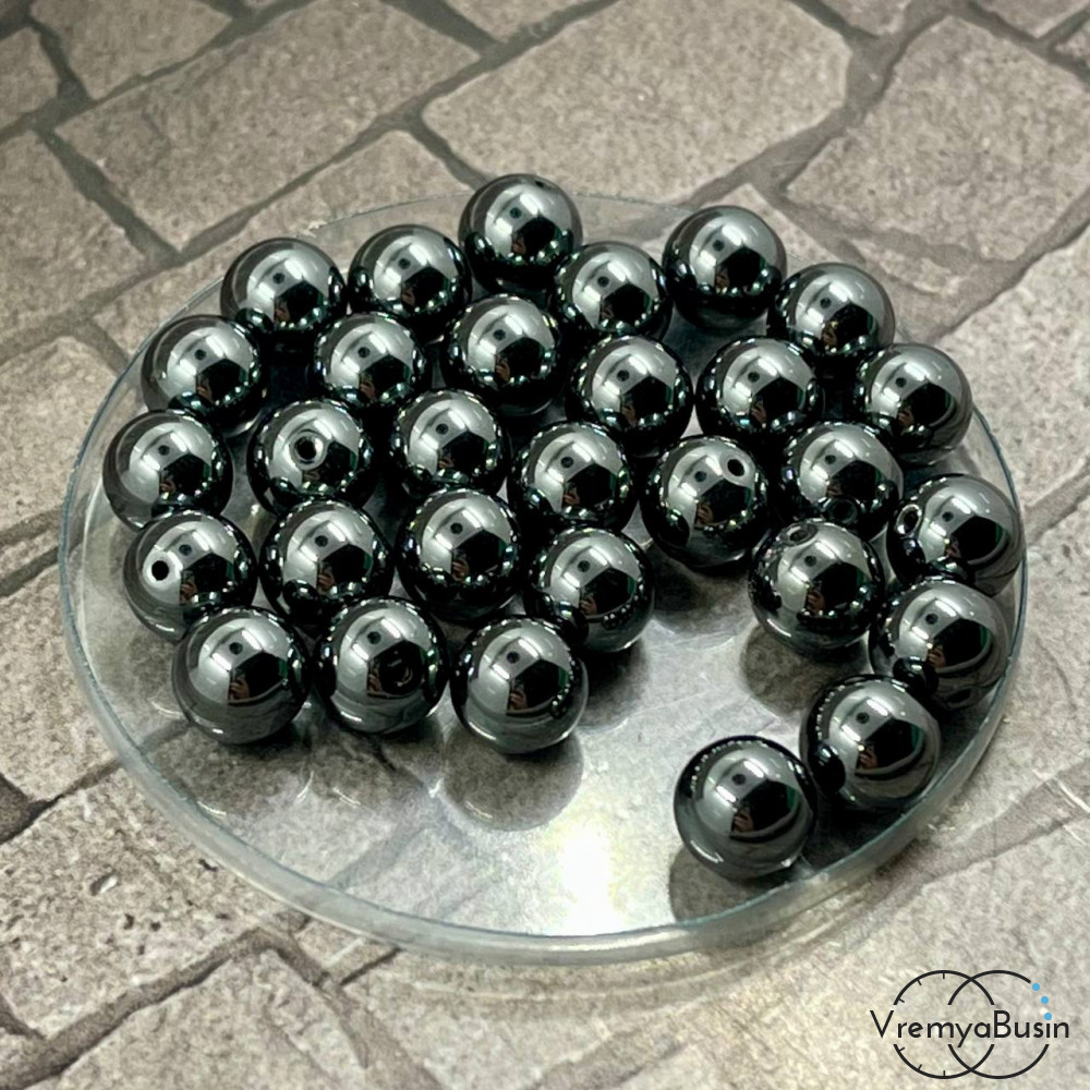 • Гематит, полупросверленные бусины шарики 8 мм (1 шт.)