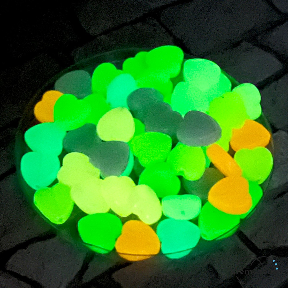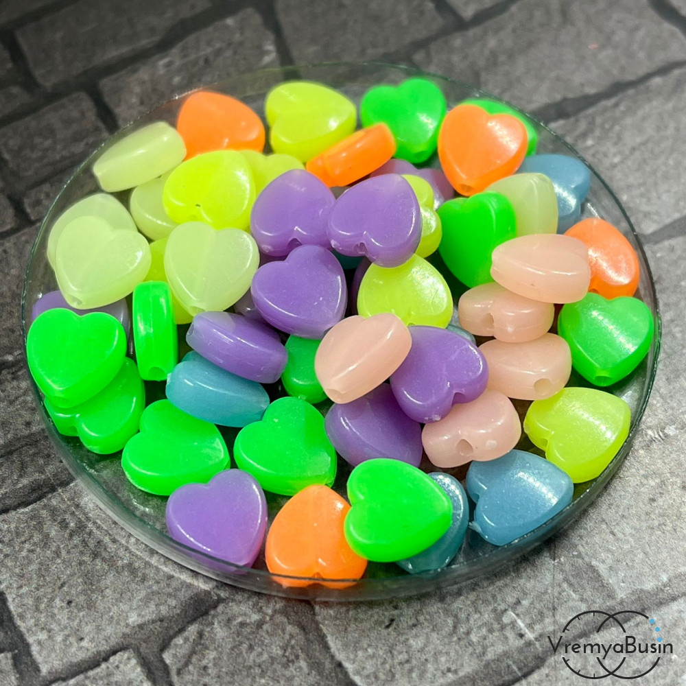 Бусины акриловые, сердце 8 мм, светятся в темноте (упак. 10 шт.)