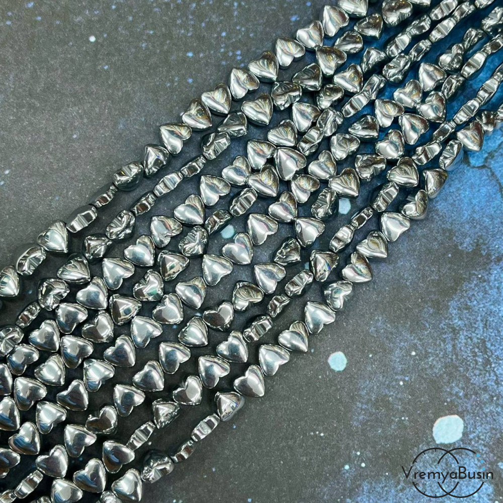 • Гематит, сердце плоское 6 мм, цв. серебро (1/2 нити, ок. 30 шт.)