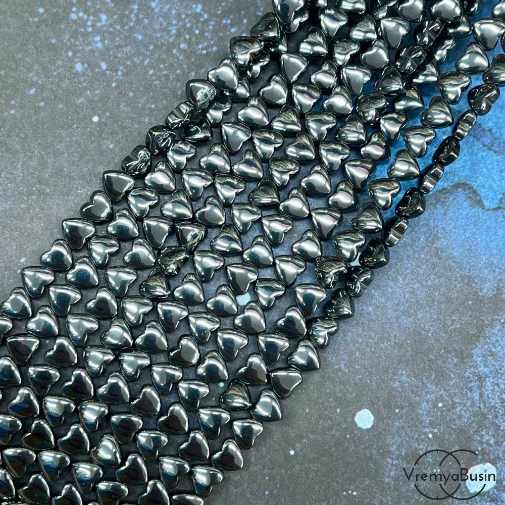 • Гематит, сердце плоское 6 мм, цв. черный (1/2 нити, ок. 30 шт.)