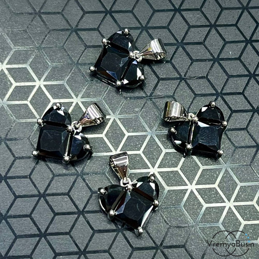 Подвеска с фианитами, сердце 12 мм, латунь с родиевым покрытием (1 шт.)