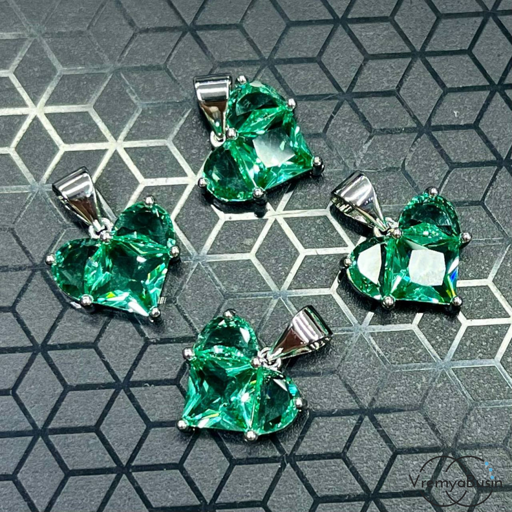• Подвеска с фианитами, сердце 12 мм, латунь с родиевым покрытием  (1 шт.)