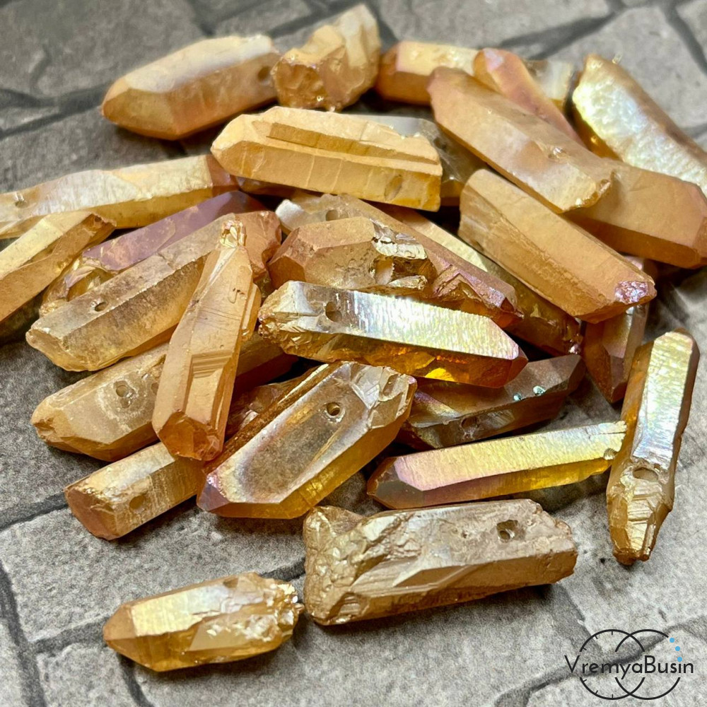 Кварц мелкие кристаллы, ср.размер 6х26 мм, цв. бежевый матовый (1 шт.)