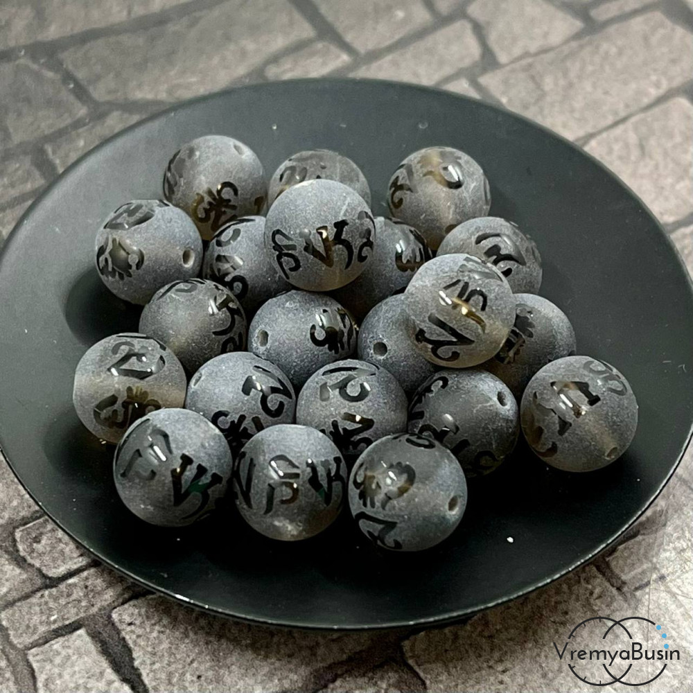 Раухтопаз матовый с иероглифами, шарик 10 мм (1 шт.)