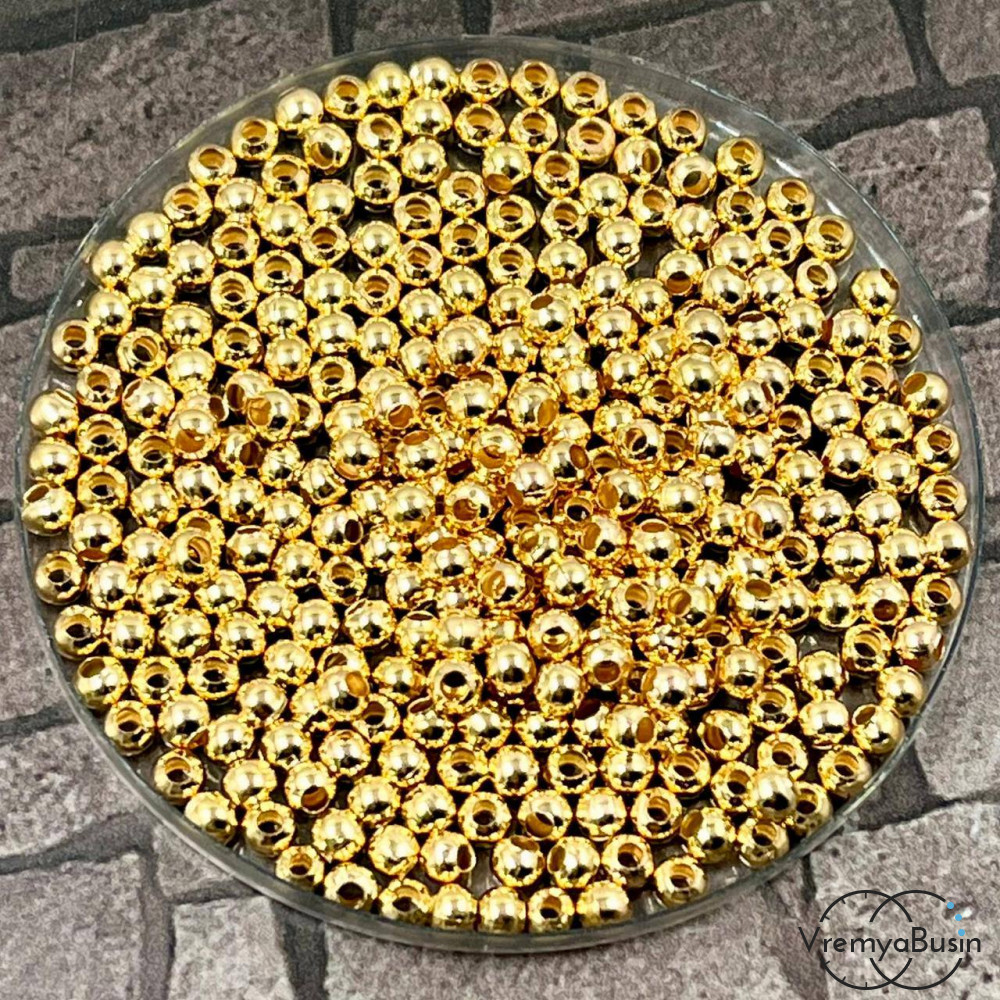 Разделители шарики, 3 мм, цв. КС золото (упак. ок. 100 шт.)