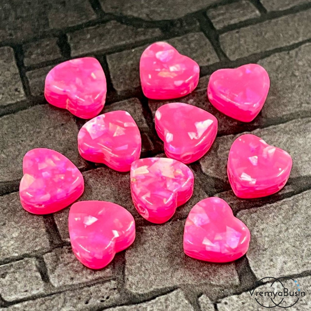 Бусины из смолы , сердце 10х10х5 мм, цв. фуксия (1 шт.)