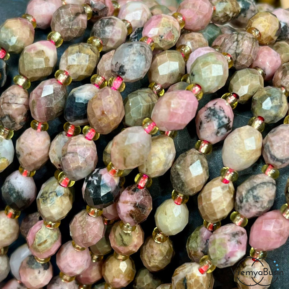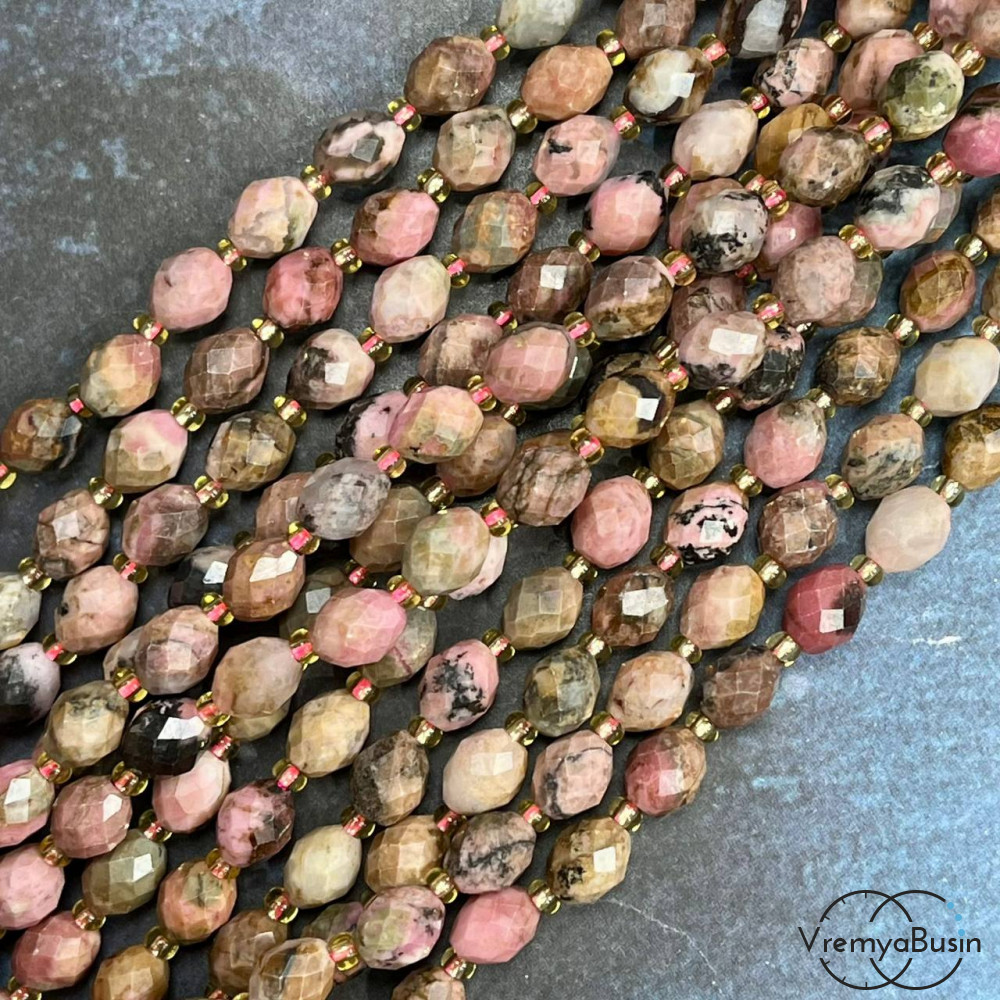 Родонит, бочонок с ювелирной огранкой, ок. 6х8 мм (нить, ок. 38 шт.)