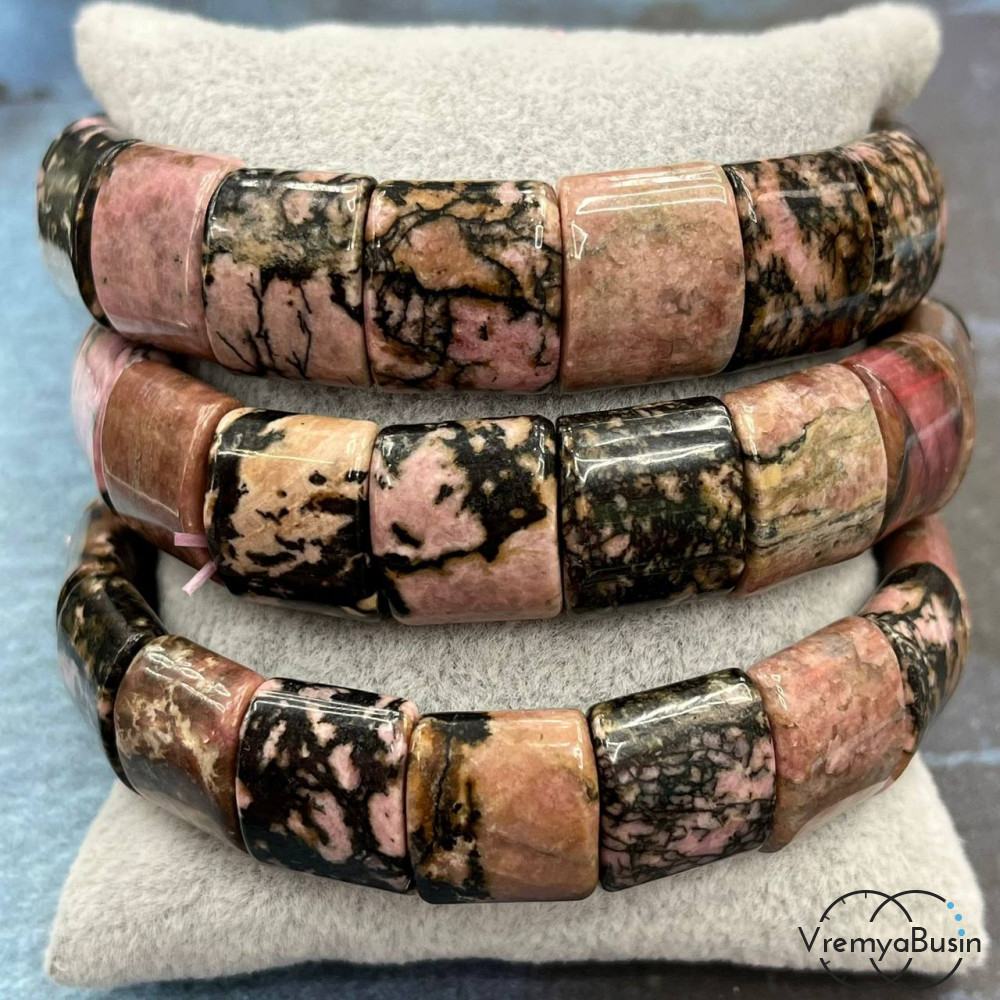 • Родонит. Бусины гладкие с двумя отверстиями 13х15 мм (17 шт.)