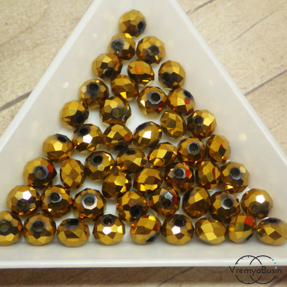 Бусины-рондели из граненого стекла, цвет ЗОЛОТО, размер 6 мм (упак. 10 шт.)