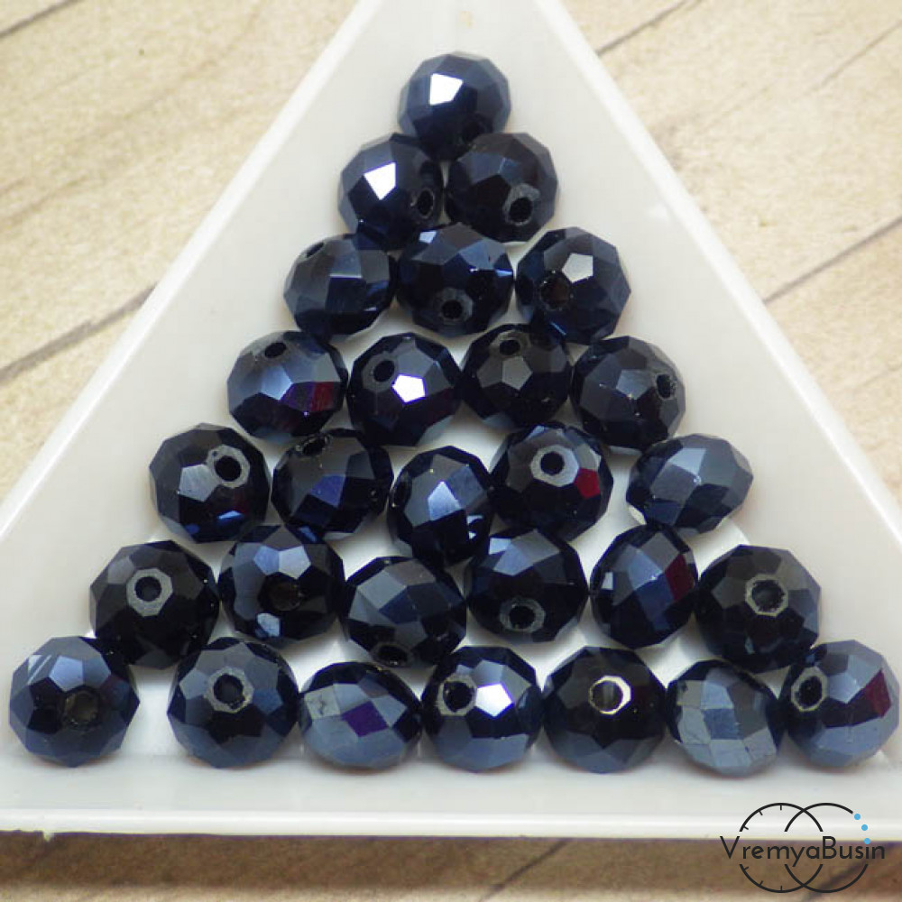 Бусины-рондели из граненого стекла, цвет ГЕМАТИТ, размер 8 мм (упак. 10 шт.)