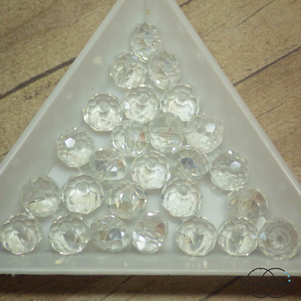 • Бусины-рондели из граненого стекла, цвет ПРОЗРАЧНЫЙ С ПЕРЕЛИВОМ, размер 8 мм  (упак. 10 шт.)