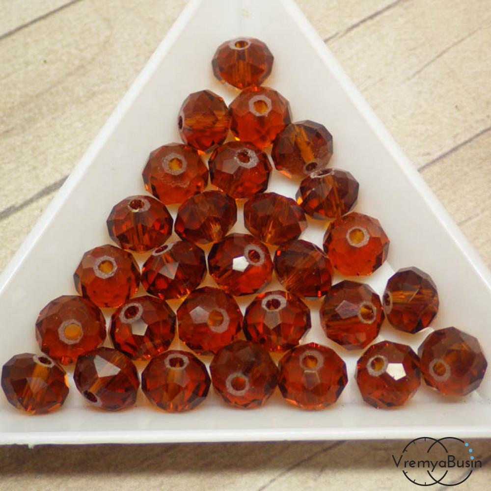 Бусины-рондели из граненого стекла, цвет КОРИЧНЕВЫЙ, размер 8 мм (упак. 10 шт.)