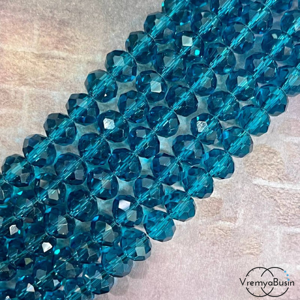 • Бусины-рондели из граненого стекла, цв.   темно-бирюзовый, размер 8 мм (нить, ок. 65  шт.)