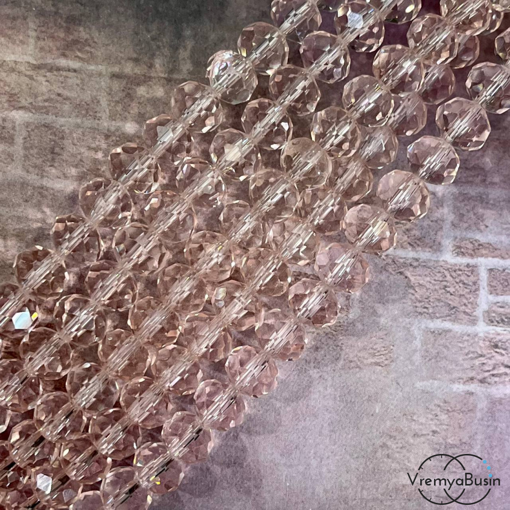• Бусины-рондели из граненого стекла, цв. розовый, размер 8 мм  (нить, ок. 65  шт.)