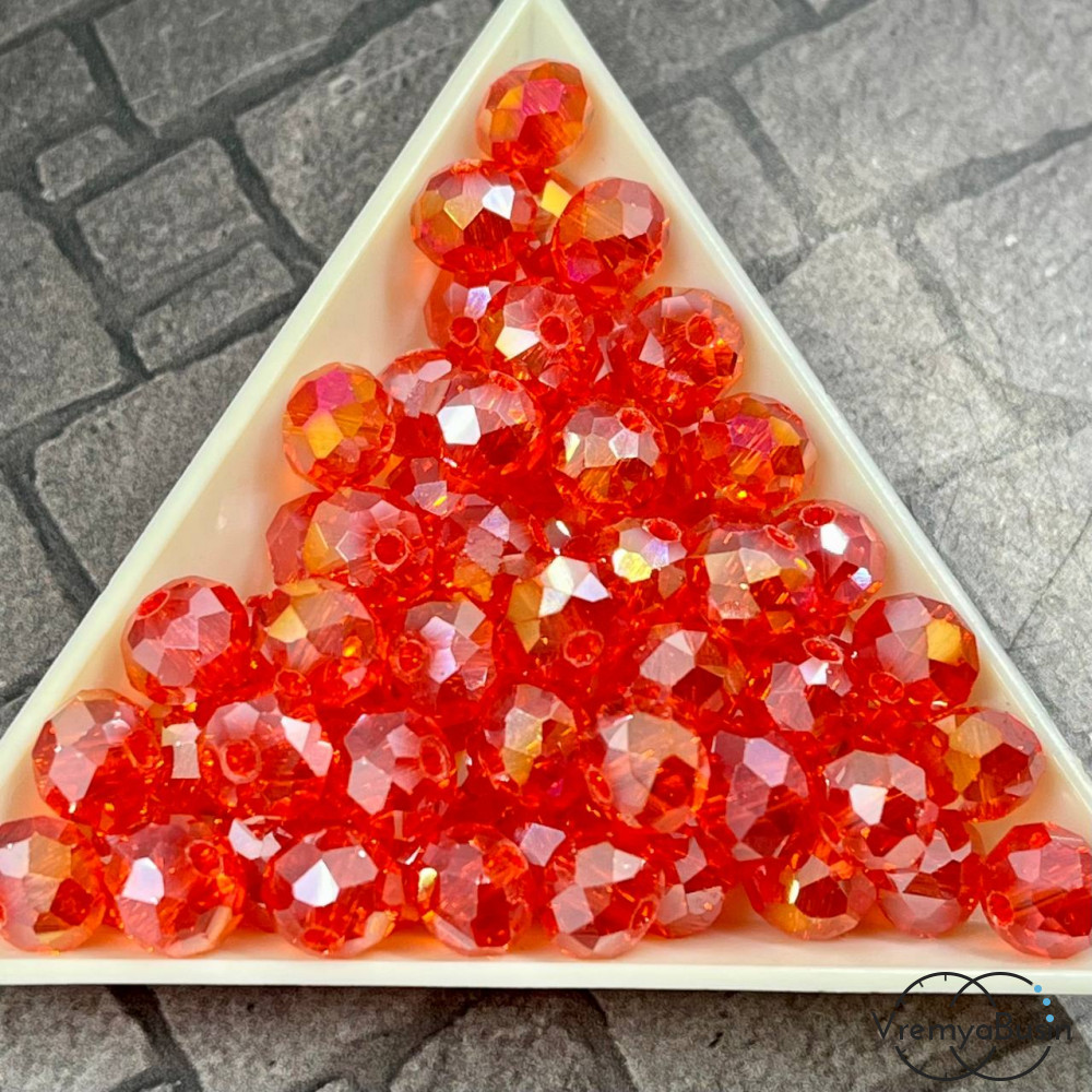 Бусины-рондели из граненого стекла, цвет АЛЫЙ с АБ переливом, размер 8 мм (упак. 10 шт.)