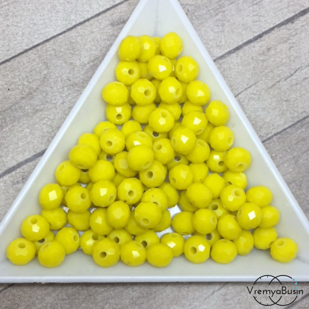 Бусины-рондели из граненого стекла, цвет ЖЕЛТЫЙ МАТОВЫЙ, размер 6 мм (упак. 10 шт.)