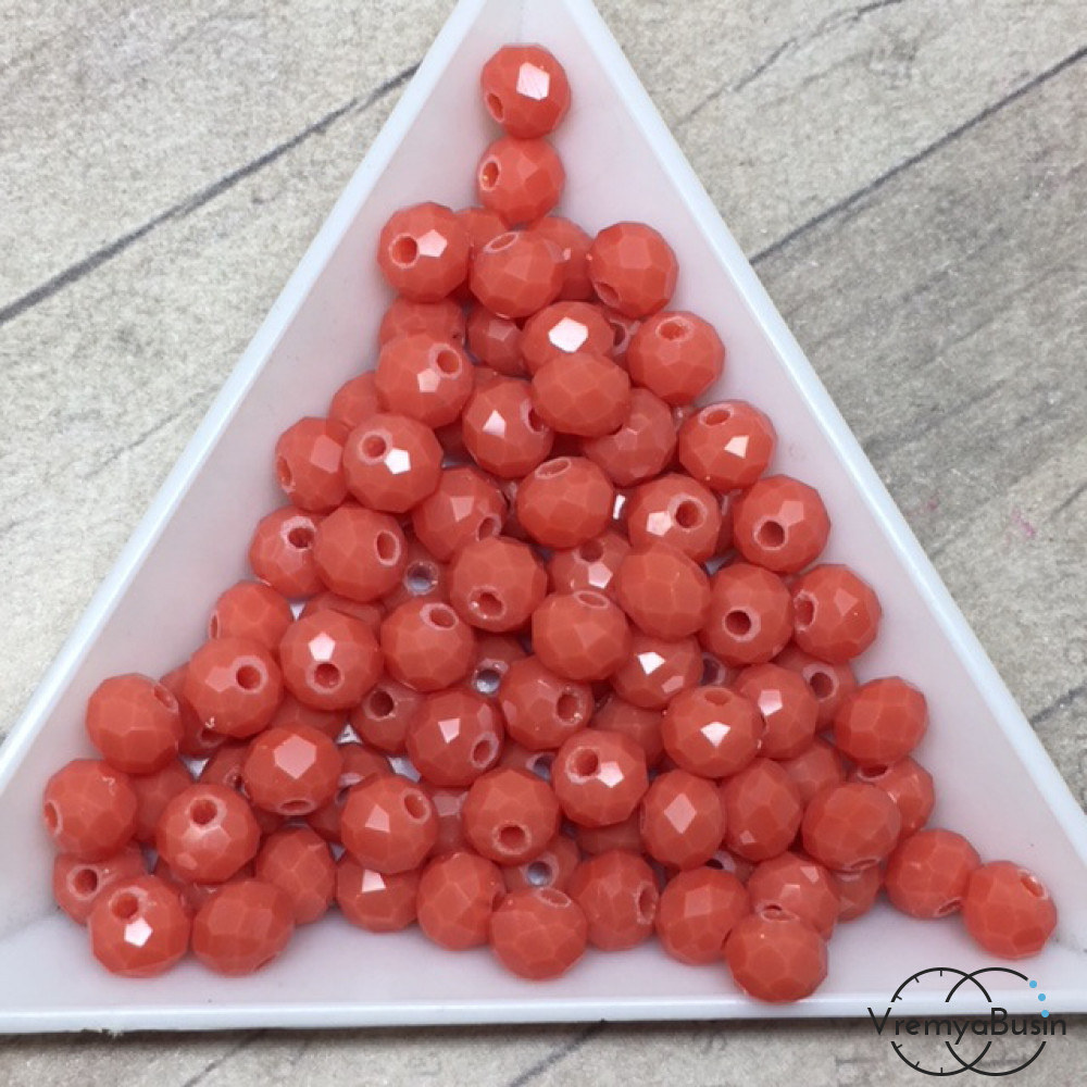 Бусины-рондели из граненого стекла, цвет ЛОСОСЕВЫЙ МАТОВЫЙ , размер 6 мм (упак. 10 шт.)