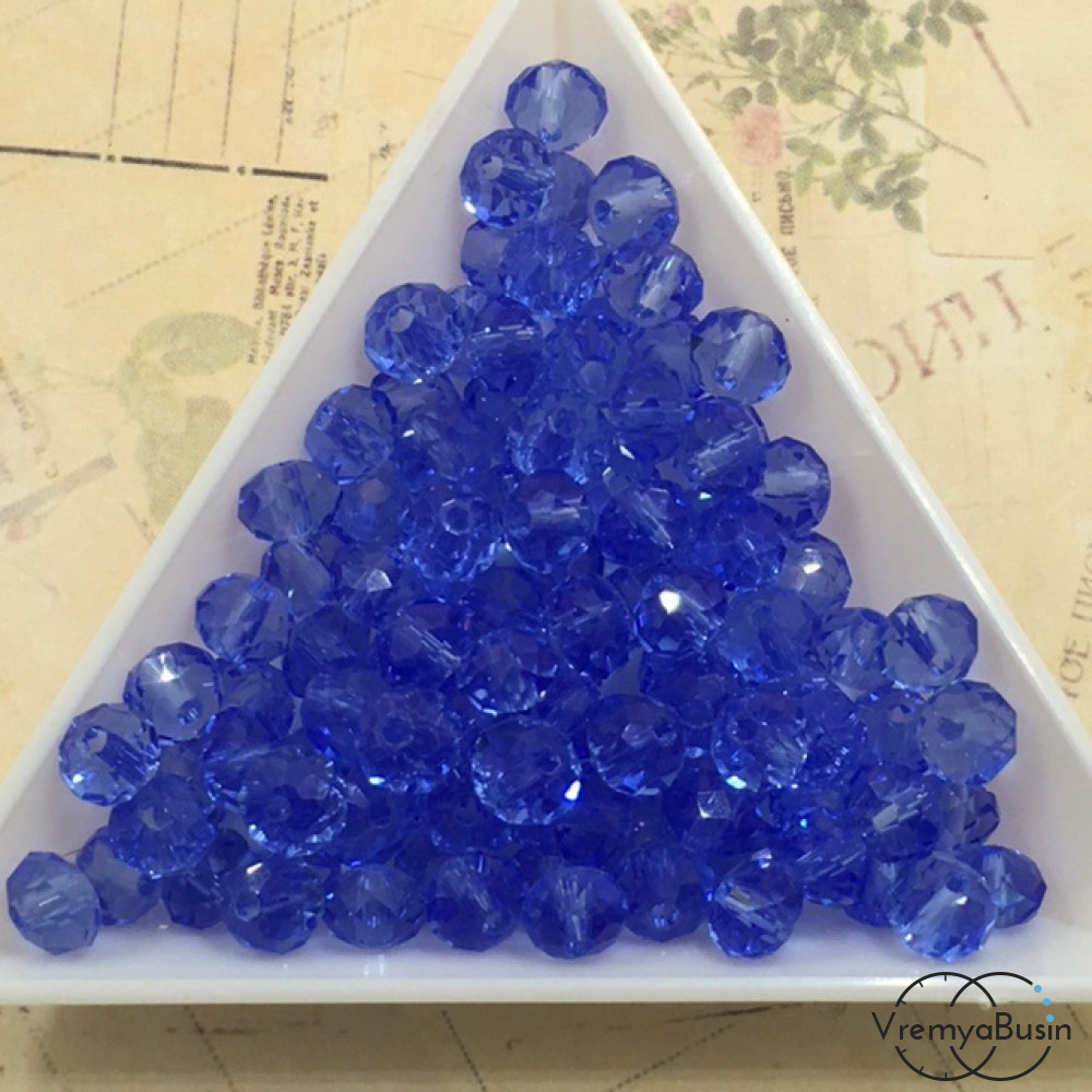• Бусины-рондели из граненого стекла, цвет ГОЛУБОЙ, размер 6 мм  (упак. 10 шт.)