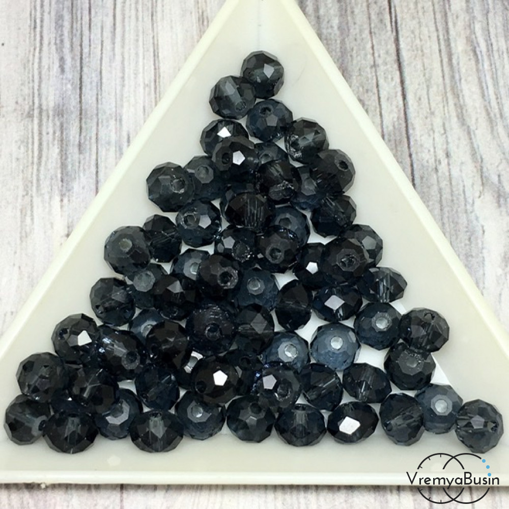 Бусины-рондели из граненого стекла, цвет ТЕМНО-СЕРЫЙ, размер 6 мм (упак. 10 шт.)