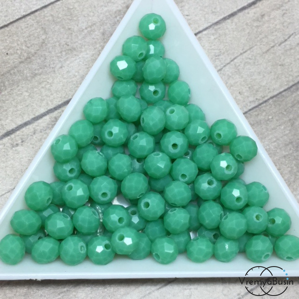 Бусины-рондели из граненого стекла, цвет МЯТНЫЙ МАТОВЫЙ, размер 6 мм (упак. 10 шт.)