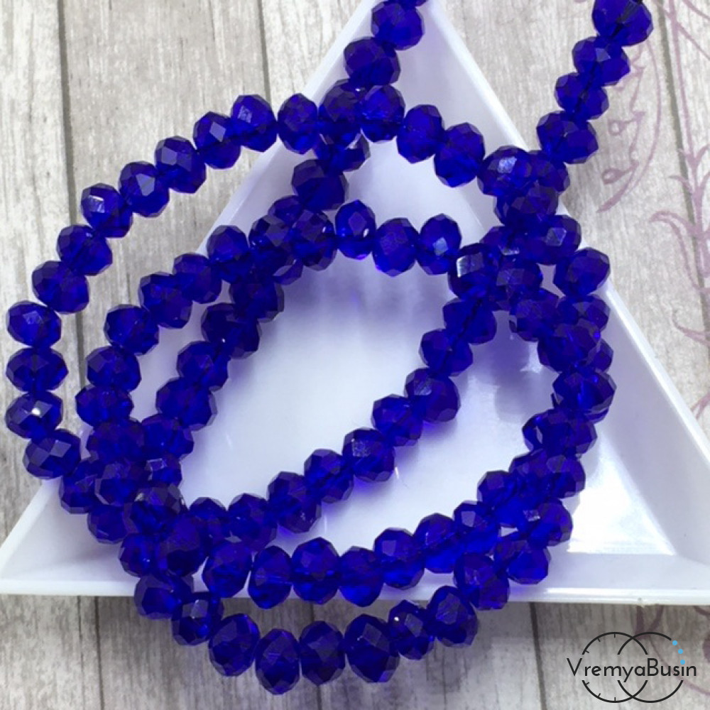 Бусины-рондели из граненого стекла, цвет ТЕМНО-СИНИЙ, размер 6 мм (10 шт.)