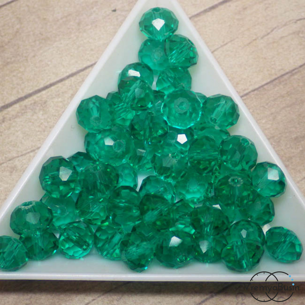 Бусины-рондели из граненого стекла, цвет ИЗУМРУДНЫЙ, размер 8 мм (упак. 10 шт.)