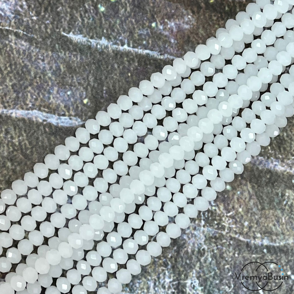 • Бусины-рондели из граненого стекла, 3х4 мм,цв. матовый белый (нить, ок. 130 шт.)