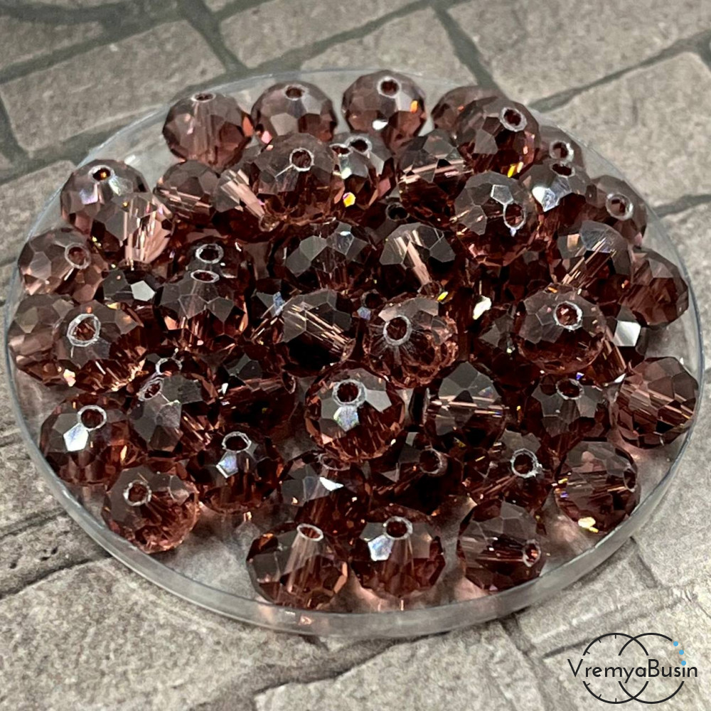 • Бусины-рондели из граненого стекла,  6х8 мм, цв. сливовый (упак. 10 шт.)