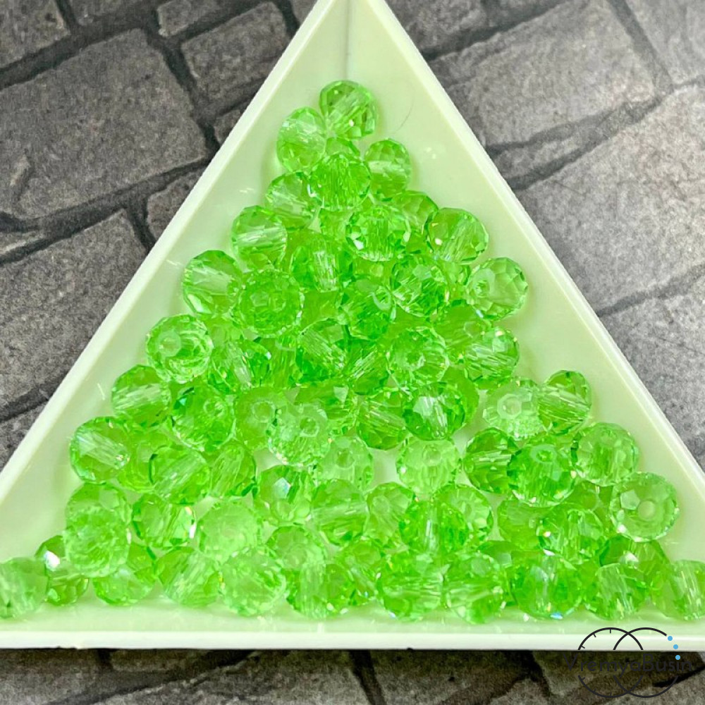 Бусины-рондели из граненого стекла, цв. САЛАТОВЫЙ, размер 6 мм (упак. 10 шт.)