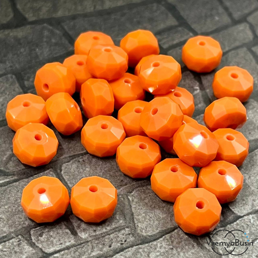 Бусины шайбы из граненого стекла, 6х9 мм цв. оранжевый матовый (1 шт.)