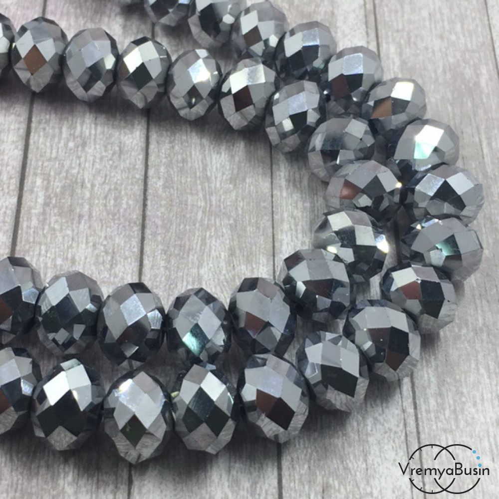 • Крупные бусины из граненого стекла. Серебро 8х12 мм (1 шт.)