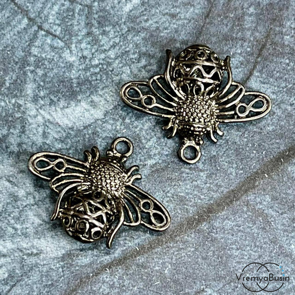 • Подвеска "Пчела", 17х21х6 мм, латунь с черным родиевым покрытием (1 шт.)