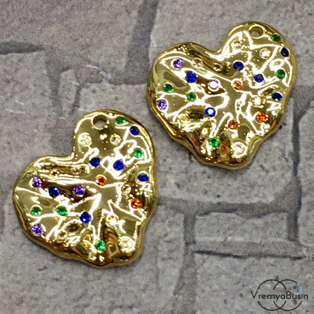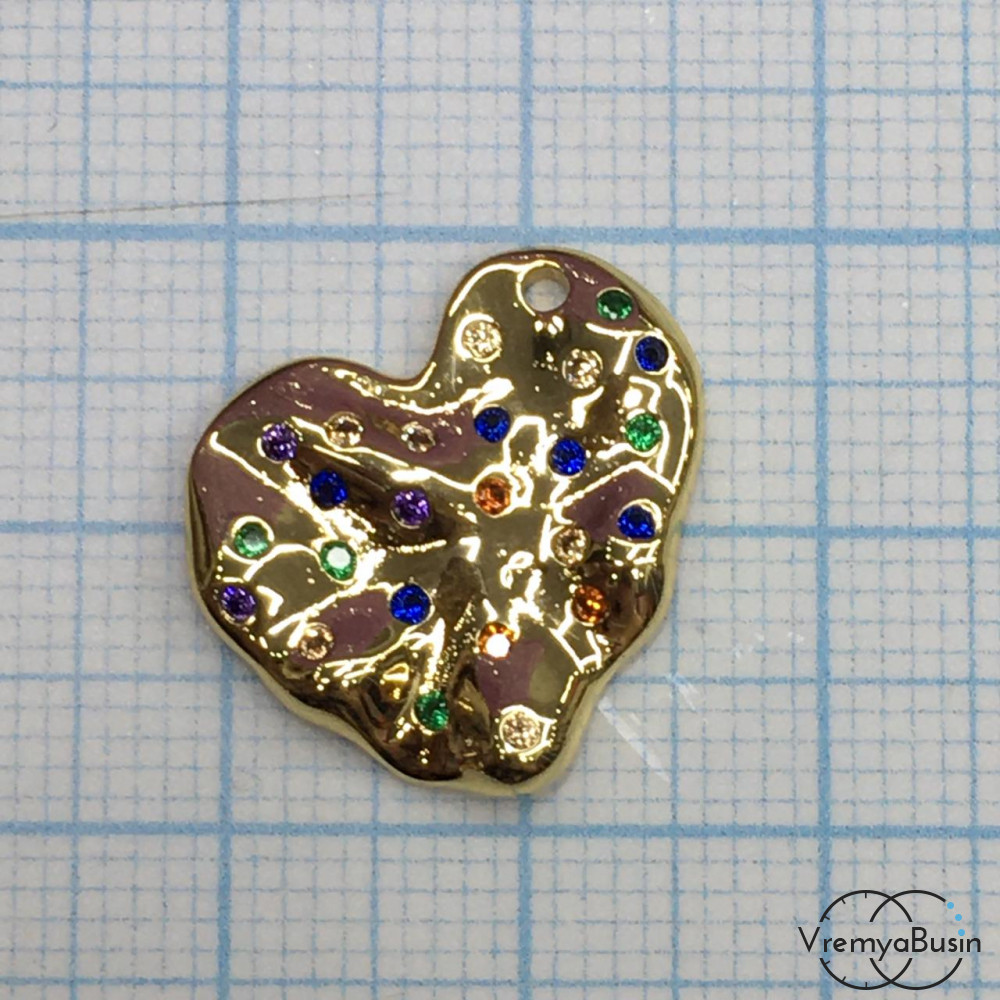 Подвеска из латуни с позолотой и цветными фианитами (1 шт.)