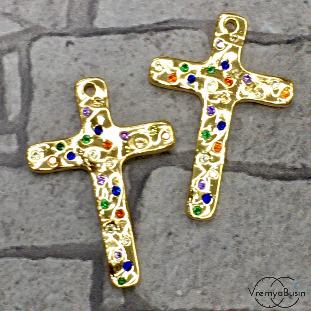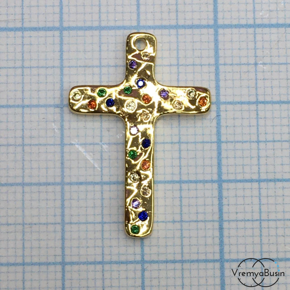 Подвеска из латуни с позолотой и цветными фианитами (1 шт.)