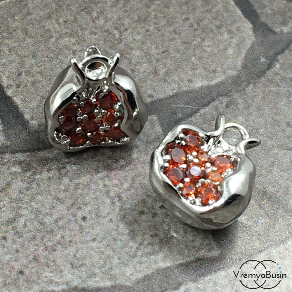 • Подвеска из латуни "Гранат", 10х11 мм, с родиевым покрытием и фианитами (1 шт.)