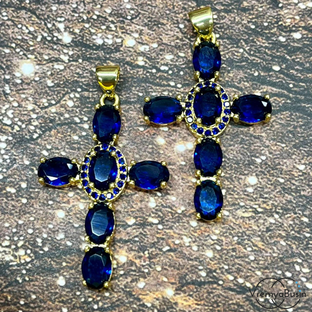 • Подвеска "Крест", 22х35 мм, из латуни с позолотой и фианитами (1 шт.)