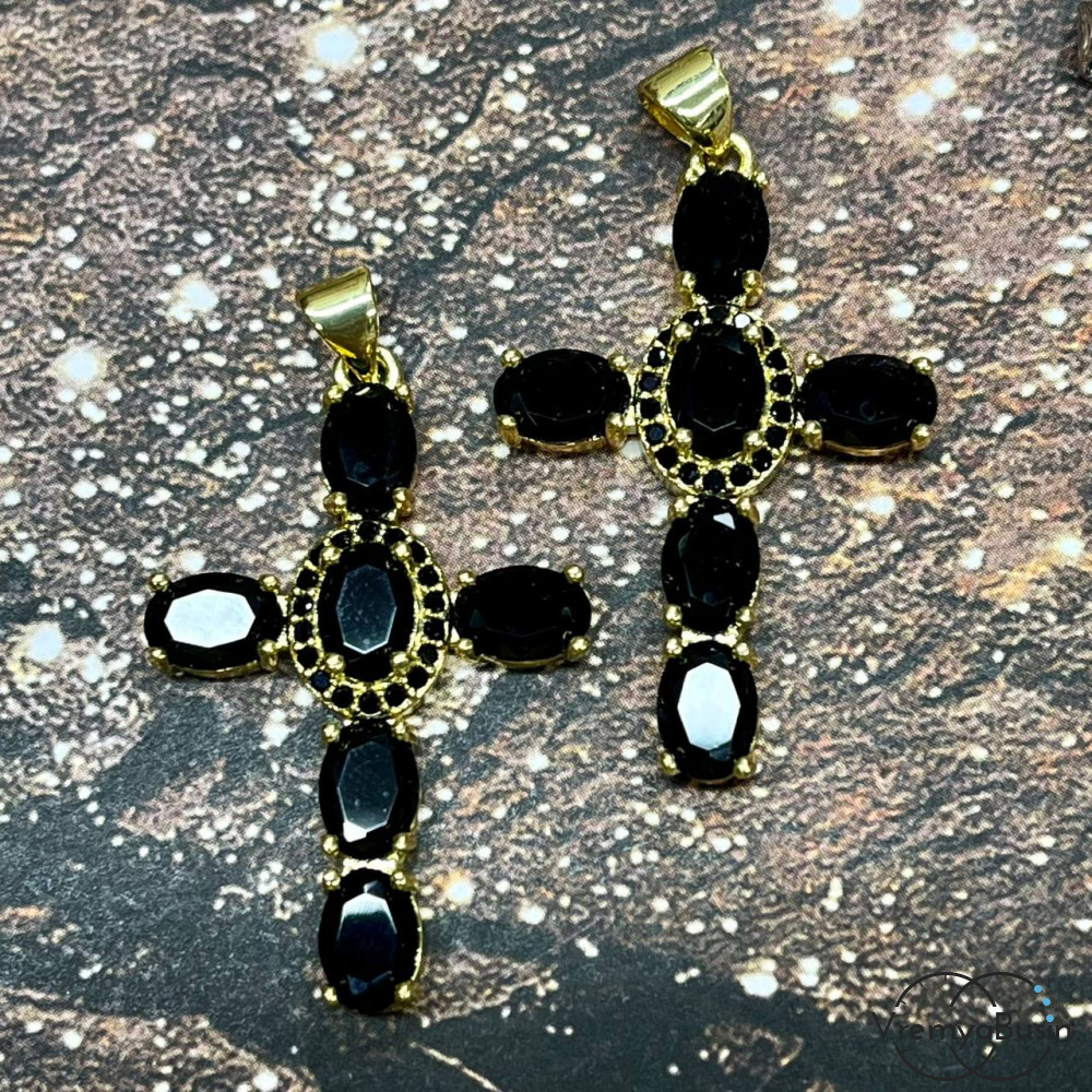 • Подвеска "Крест", 22х35 мм, из латуни с позолотой и фианитами (1 шт.)