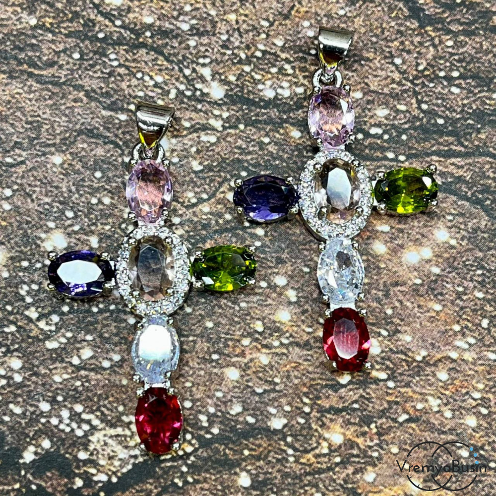 • Подвеска "Крест", 22х35 мм, из латуни с позолотой и фианитами (1 шт.)