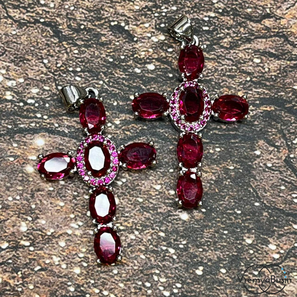 • Подвеска "Крест", 22х35 мм, из латуни с родиевым покрытием и фианитами (1 шт.)