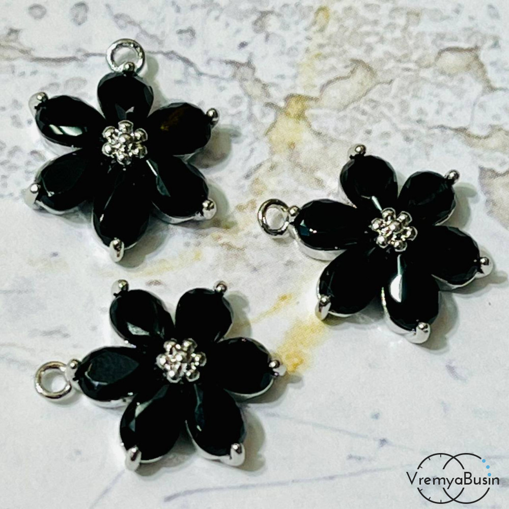 Подвеска с фианитами "Цветочек", 13х17 мм (1 шт.)