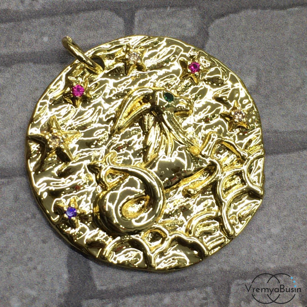 • Подвеска "Знак зодиака" из латуни с позолотой и фианитами (1 шт.)