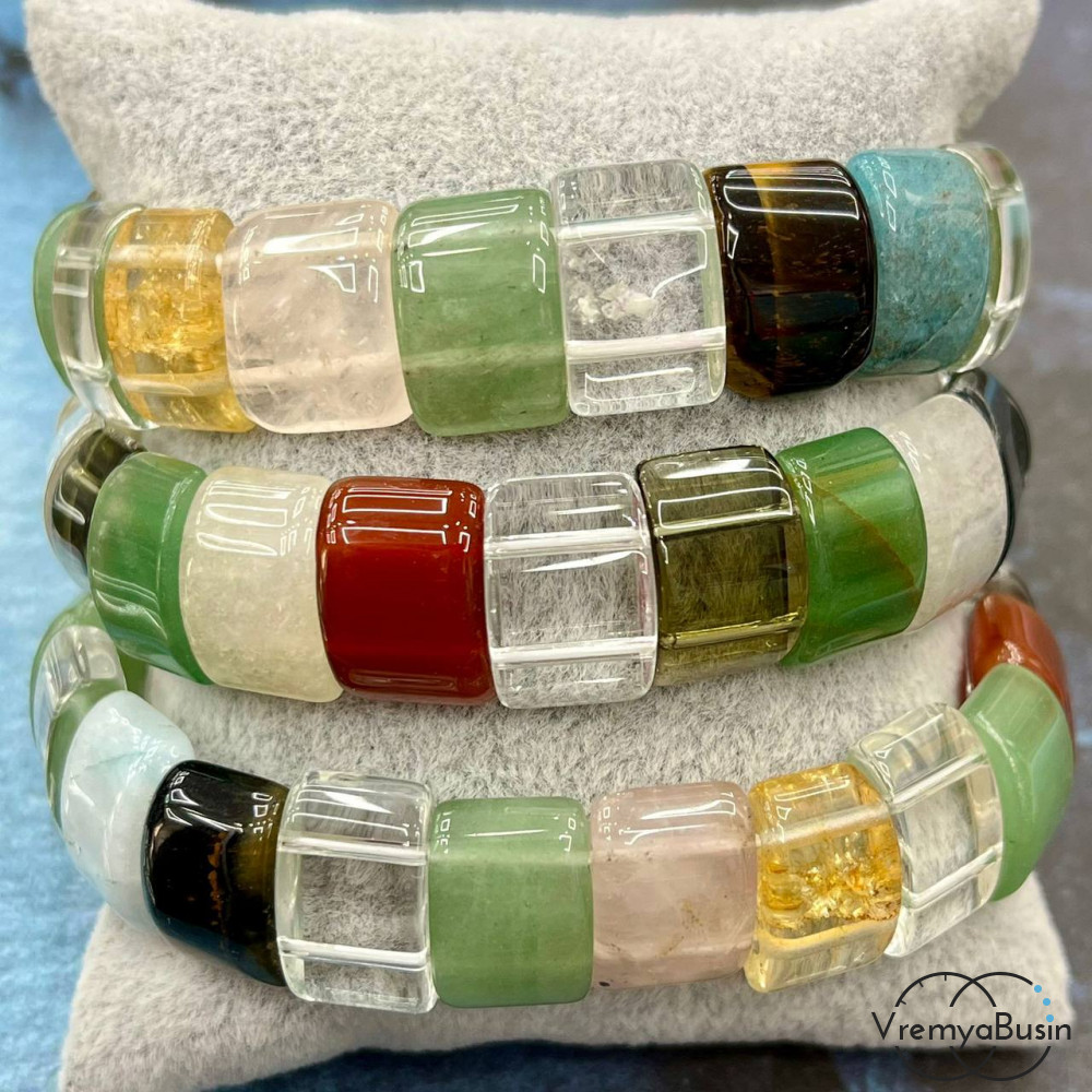 • Микс самоцветов. Бусины гладкие с двумя отверстиями 11х14 мм (19 шт.)